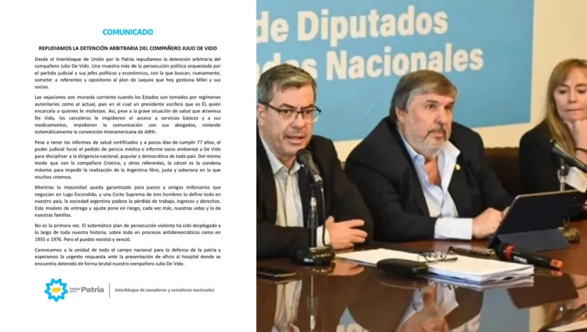 UP incluso intenta vincular la detención de De Vido con episodios históricos como 1955 o 1976, afirmando que existe un "plan sistemático de persecución violenta".